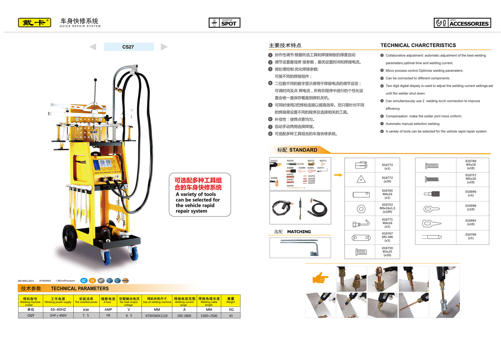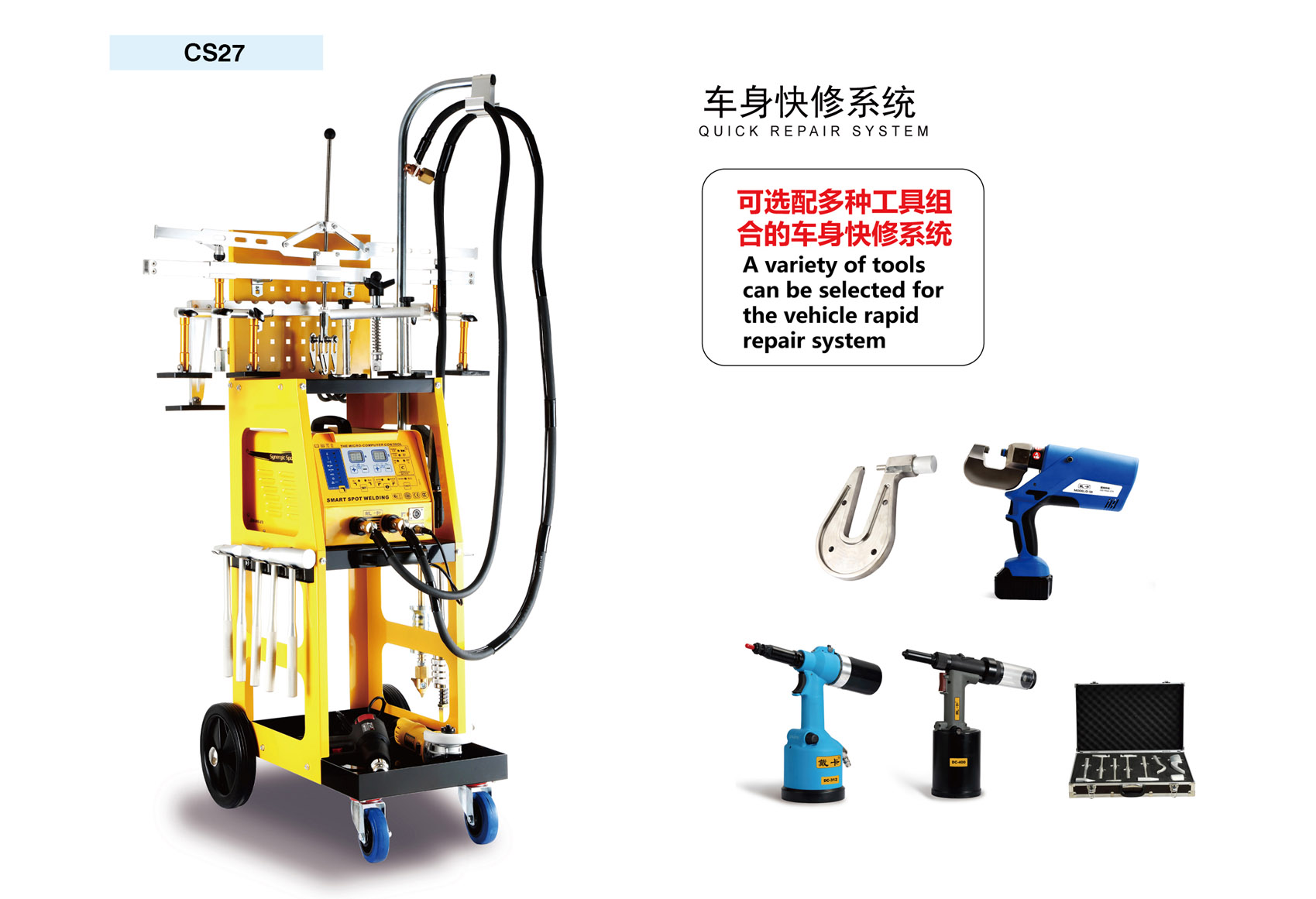 8、可選配多種工具組合的車身快修系統(tǒng)。