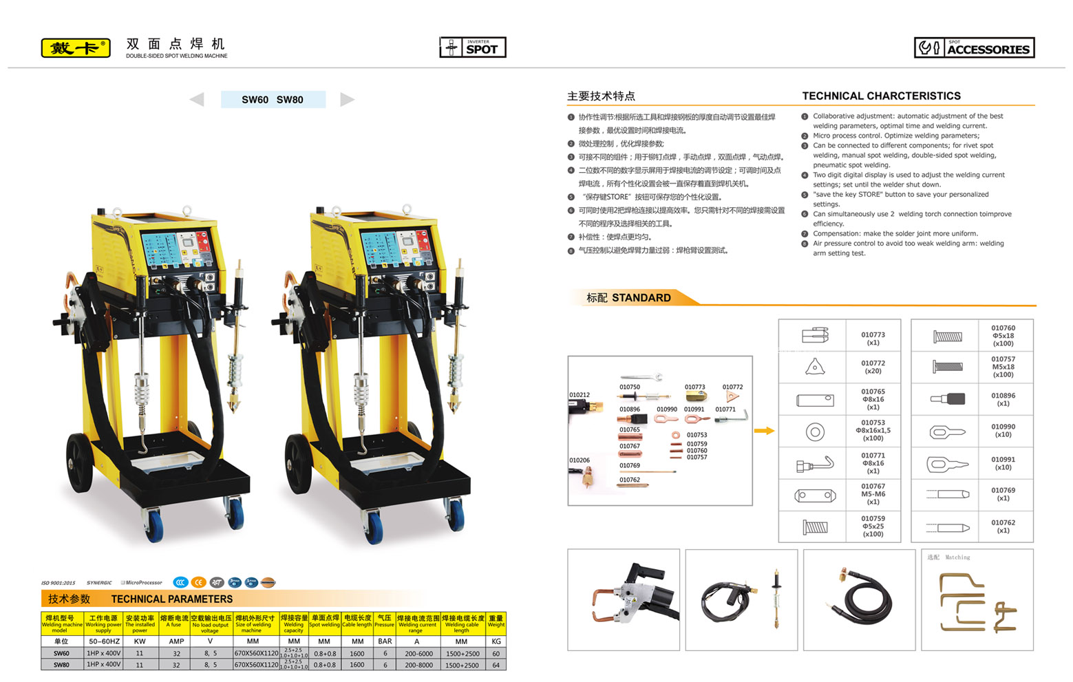3、可接不同的焊接組件:用于鉚釘點焊、手動點焊、雙面點焊、氣動點焊。