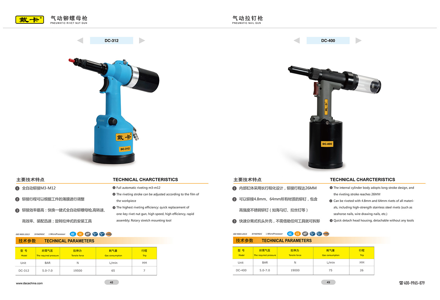 3. 鉚接效率最高:快換一鍵式全自動鉚螺母槍,高轉(zhuǎn)速、高效率、裝配迅速;旋轉(zhuǎn)拉伸式的安裝工具
