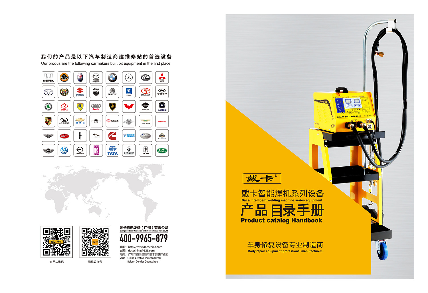 戴卡智能焊機源于歐洲,采用原裝進口配件,專注于汽車鈑金修復設(shè)備,卓越的品質(zhì)在行業(yè)中倍受認可,戴卡系列產(chǎn)品覆蓋各大品牌4S店、汽車廠、職業(yè)院校、快修行業(yè)的配套,產(chǎn)品出口歐美、東南亞等國家。目前系列產(chǎn)品有:智能車身修復機、智能點焊機、保護焊機、鋁車身系列、充電啟動機、塑料焊機、紅外短波烤漆燈、無痕修復機等。戴卡一直堅持生產(chǎn)高品質(zhì)產(chǎn)品,不斷創(chuàng)新,打造一個汽車鈑金修復設(shè)備智能模式的新時代。因為專注,所以專業(yè);一流的產(chǎn)品,完美的服務,您的滿意是我們的目標!